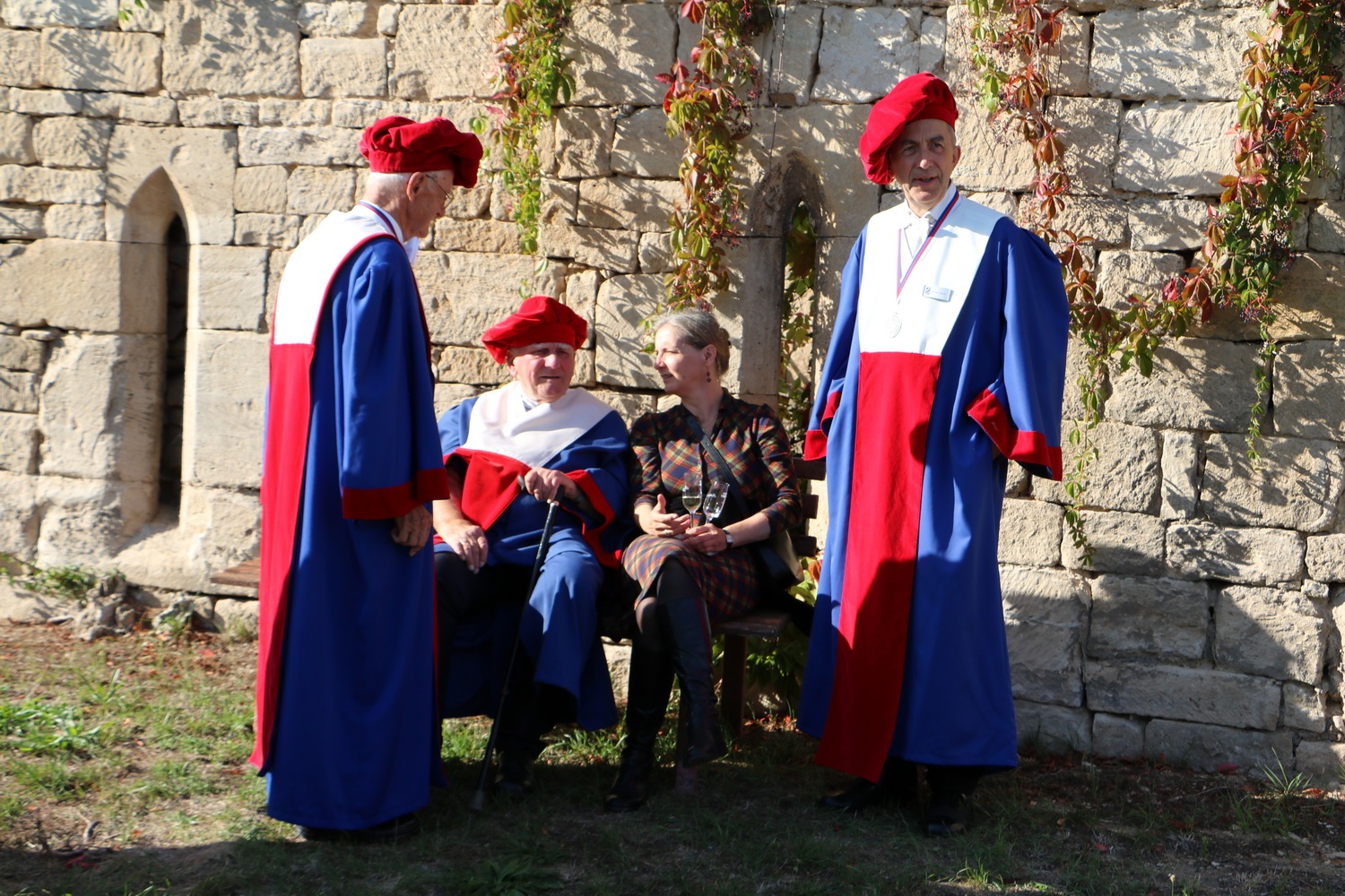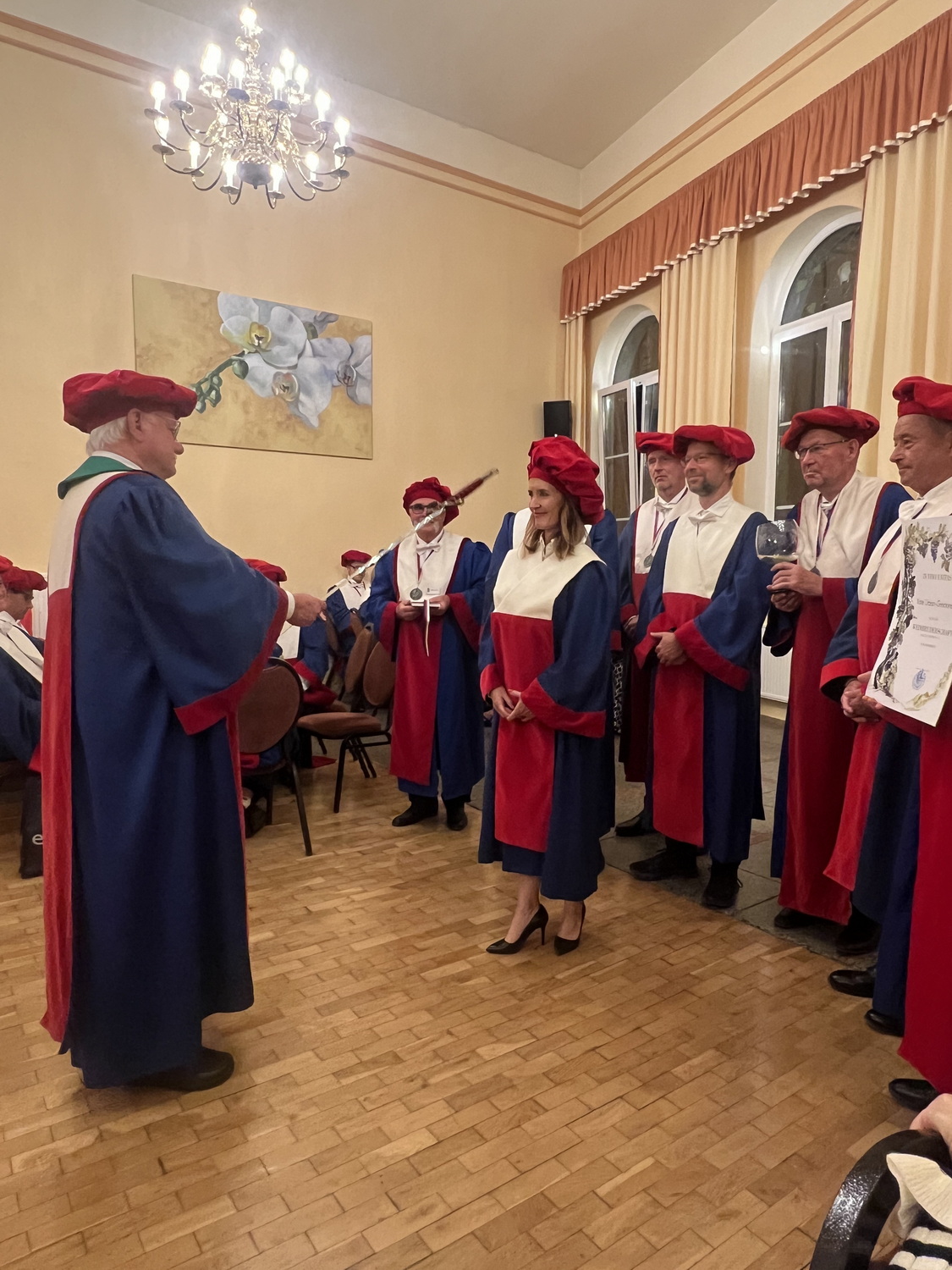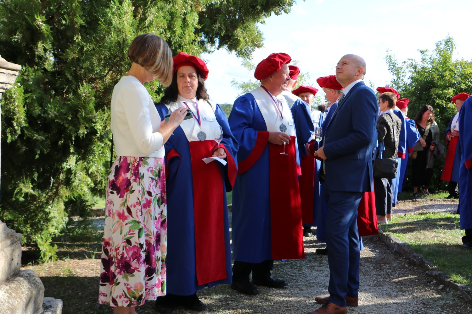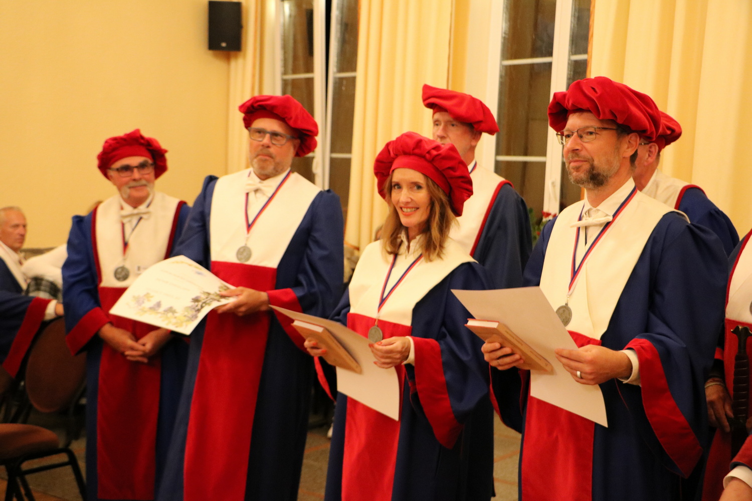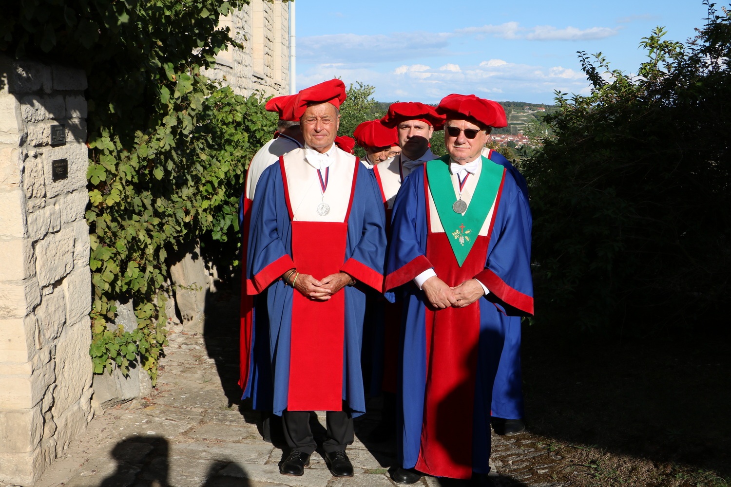 Jeder Anwärter stellte sich zunächst kurz vor und bestätigte seinen feierlichen Aufnahmeschwur. Danach erfolgte der symbolische Schwertschlag durch Ersten Bruderschaftsmeister Dieter Hanisch, ein Moment voller Geschichte und Bedeutung. Den Abschluss dieser besonderen Aufnahme bildete ein gemeinsamer Schluck Wein aus einem großen Glas, ein Zeichen echter Gemeinschaft. Anschließend erhielten die neuen Mitglieder ihre Bruderschaftsmedaille und die Aufnahmeurkunde. Ein Abend voller Genuss und Herzlichkeit. Beim gemeinsamen Abendessen hallten die Eindrücke des Tages noch lange nach. Gespräche erfüllten den Raum, mal bewegt, mal fröhlich, und oft erfüllt von Erinnerungen. Die anschließende Weinverkostung mit besonderen Weinen aus Rheinhessen, ausgewählt auf der Weinfahrt im Mai und vorgestellt von Kellermeister Andre Gussek, setzte einen genussvollen Schlusspunkt. Ein Tag, der in Erinnerung bleibt.