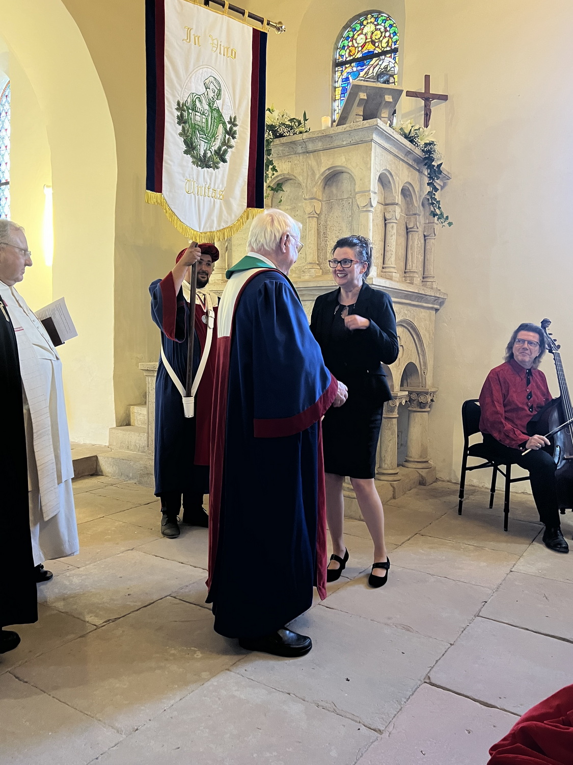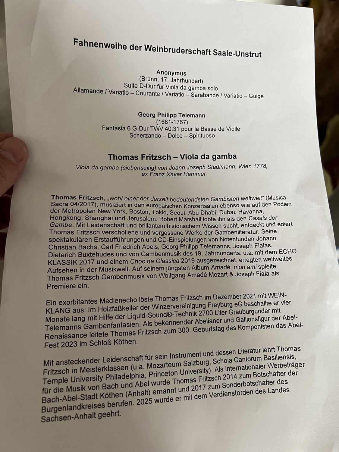 Musikalisch wurde der Festakt von Thomas Fritzsch, einem der international bedeutendsten Gambisten, getragen. Die zarten und historischen Töne seiner siebensaitigen Viola da gamba, von einem anonymen Meisterwerk bis zu Telemanns Fantasie, erfüllten die Kirche mit einem Klang, der Herz und Raum gleichermaßen berührte. Eine Lesung aus dem 1. Korintherbrief, vorgetragen von Bruderschaftsmeister Dieter Hanisch, erinnerte an die Vielfalt und Einheit innerhalb der Gemeinschaft.