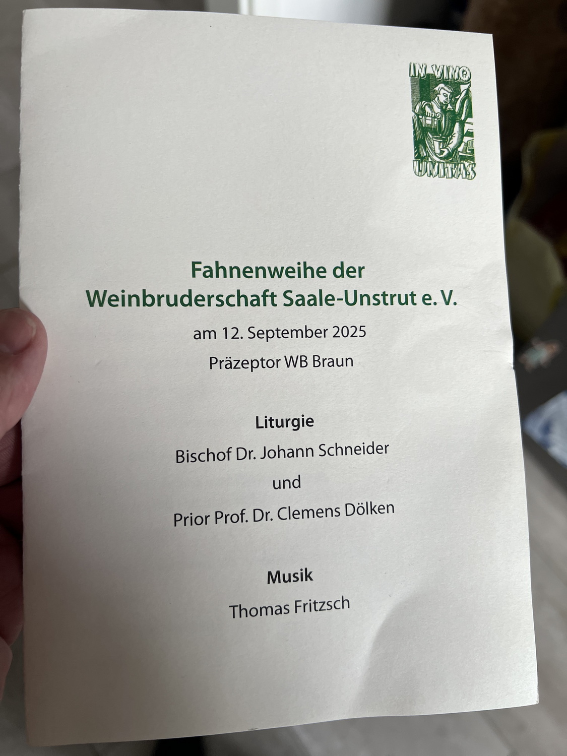 Die feierliche Weihe der neuen Vereinsfahne, der bewegende Generalkonvent und die Aufnahme neuer Mitglieder machten diesen 12. September 2025 zu einem Tag voller Wärme, Gemeinschaft und tiefer Verbundenheit, ein Tag, der noch lange im Herzen der Weinbruderschaft Saale-Unstrut e.V. weiterklingen wird.