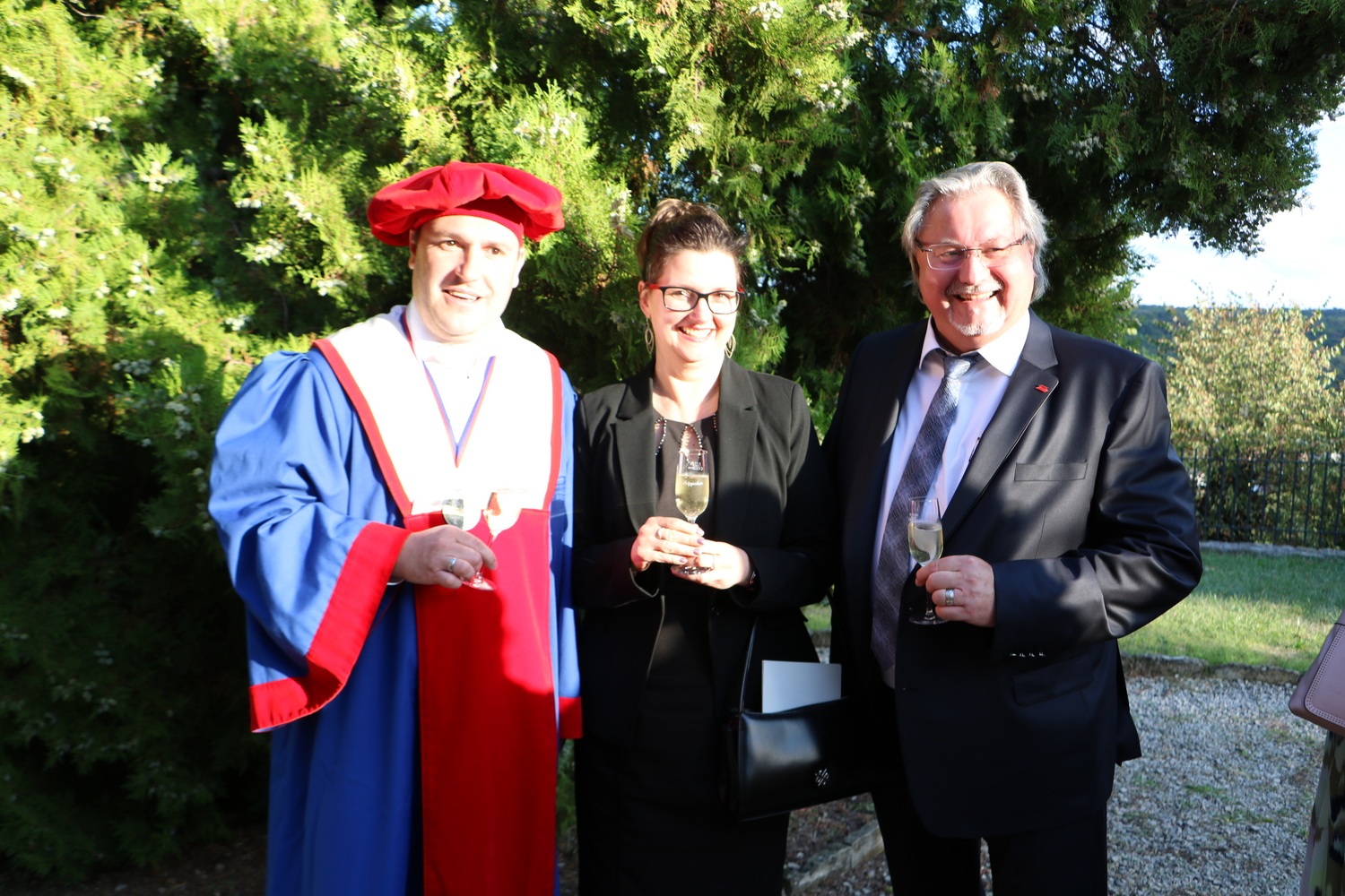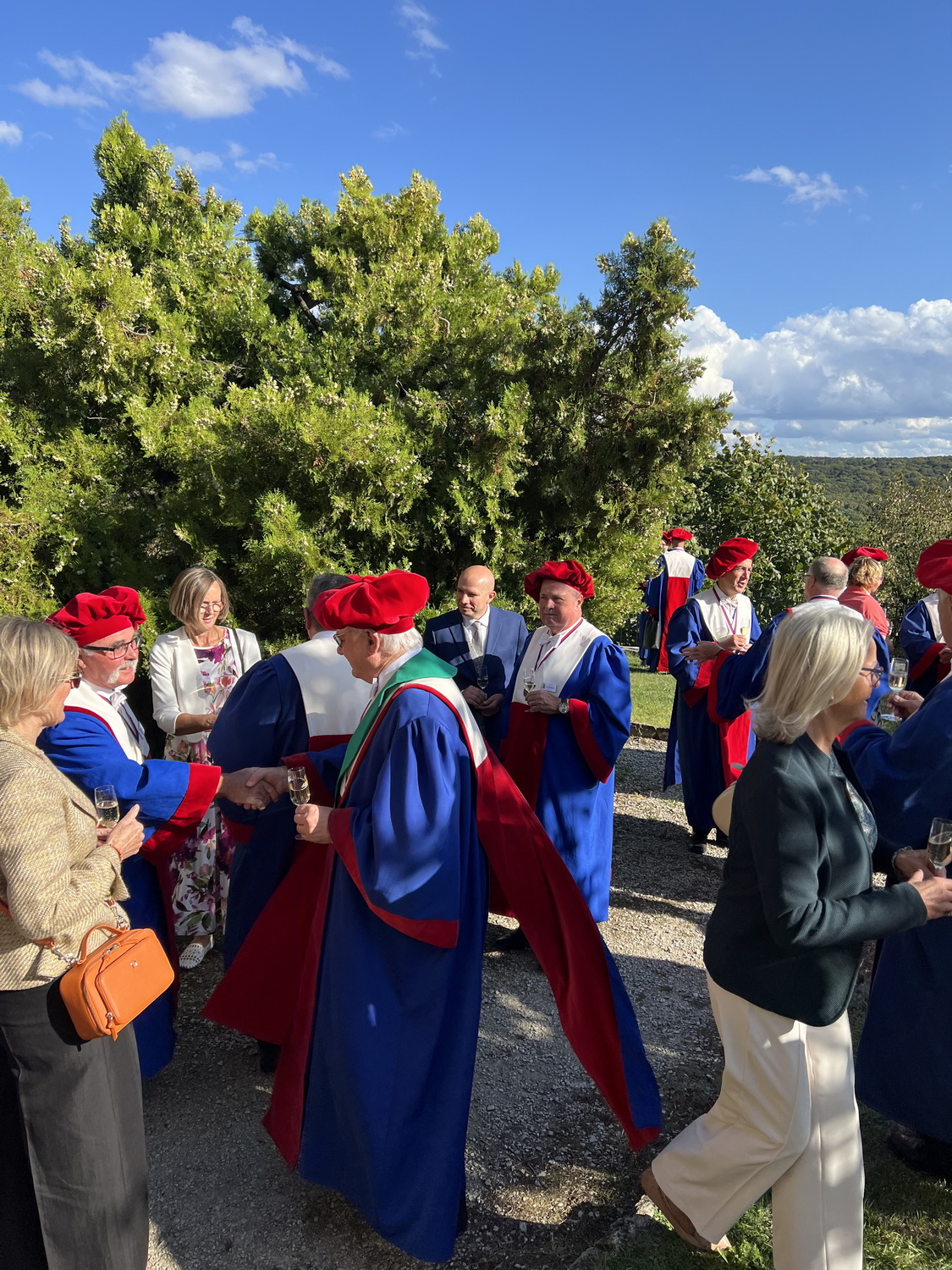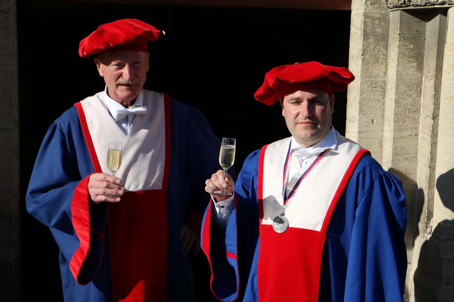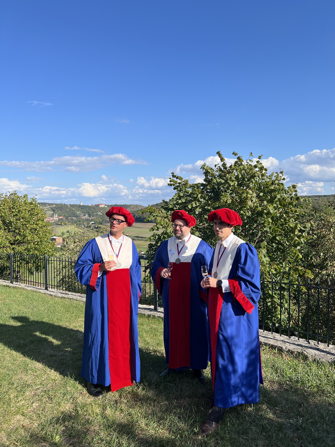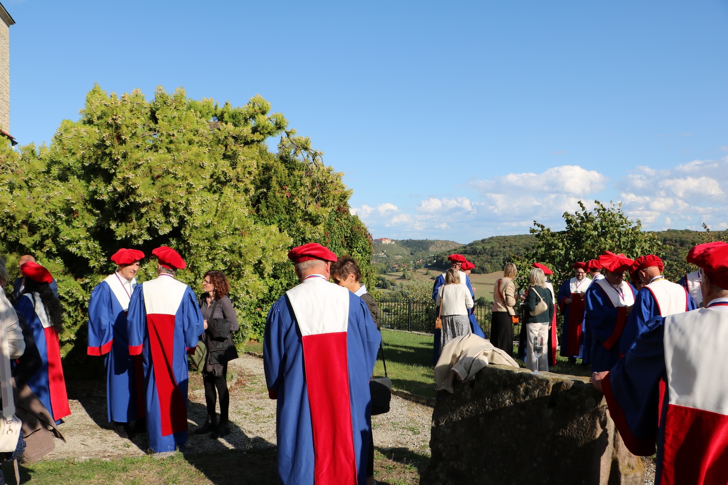 Jeder Anwärter stellte sich zunächst kurz vor und bestätigte seinen feierlichen Aufnahmeschwur. Danach erfolgte der symbolische Schwertschlag durch Ersten Bruderschaftsmeister Dieter Hanisch, ein Moment voller Geschichte und Bedeutung. Den Abschluss dieser besonderen Aufnahme bildete ein gemeinsamer Schluck Wein aus einem großen Glas, ein Zeichen echter Gemeinschaft. Anschließend erhielten die neuen Mitglieder ihre Bruderschaftsmedaille und die Aufnahmeurkunde. Ein Abend voller Genuss und Herzlichkeit. Beim gemeinsamen Abendessen hallten die Eindrücke des Tages noch lange nach. Gespräche erfüllten den Raum, mal bewegt, mal fröhlich, und oft erfüllt von Erinnerungen. Die anschließende Weinverkostung mit besonderen Weinen aus Rheinhessen, ausgewählt auf der Weinfahrt im Mai und vorgestellt von Kellermeister Andre Gussek, setzte einen genussvollen Schlusspunkt. Ein Tag, der in Erinnerung bleibt.