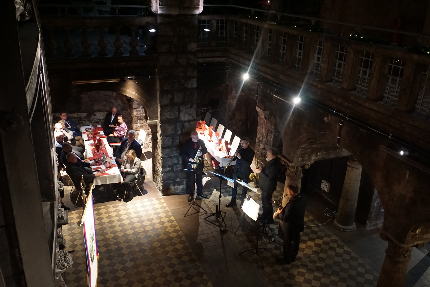Das kulturelle Programm gestaltete das Saxonia-Thüringen-Quartett, das die Gäste durch klassische Werke wie Gloria – fidestis adelis ebenso begeisterte wie durch moderne Stücke, darunter das Lied Paladium. Zwischendurch wurden die Besucher aktiv eingebunden und sangen gemeinsam mit den Musikern bekannte Weihnachtslieder wie Alle Jahre wieder und Lasst uns froh und munter sein.